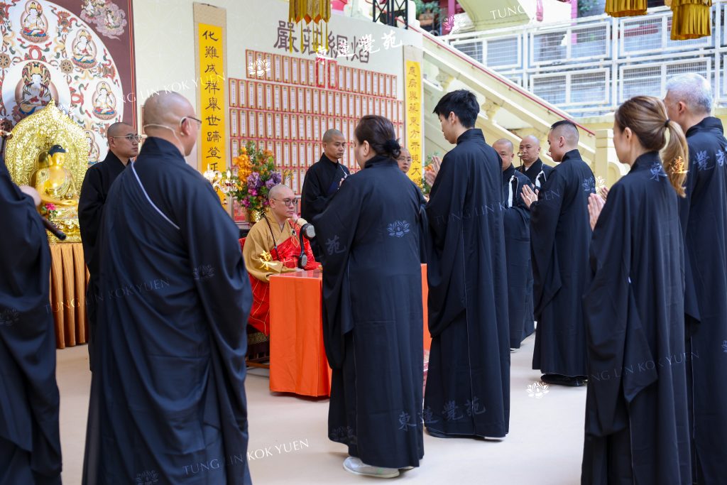 欣逢 東蓮覺苑建苑九十周年誌慶,【大悲心 大悲行】焰口普利祈福大法會的第三天舉行了「傳授三皈五戒大典」。儀典恭請苑長僧徹法師為傳授皈依五戒本師,現場逾百位善信參與,為歷年來本苑三皈五戒人數最多,法緣殊勝。